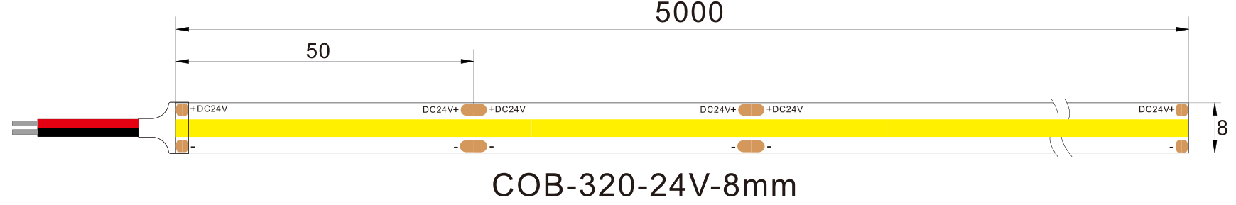 - Light Source: 320pcs/m COB Chips LED